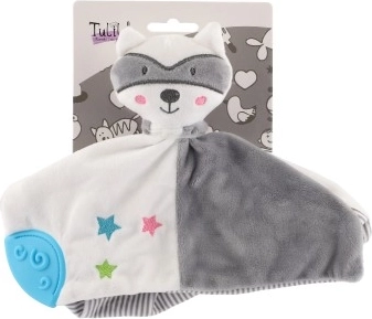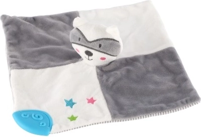 La combinazione di colori grigio e bianco e il design carino del procione rendono il tranquillizzante un accessorio perfetto per ogni culla.