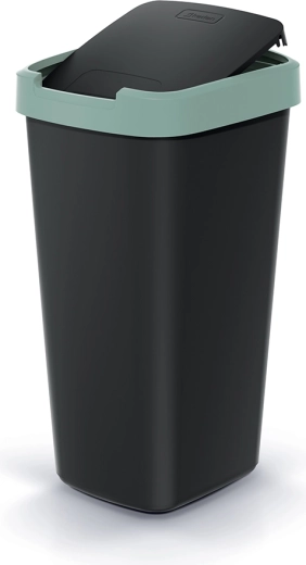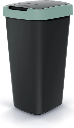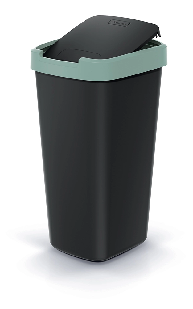 Pattumiera elegante e pratica con capacità di 25 litri e coperchio basculante per gettare i rifiuti comodamente senza contatto. Le dimensioni compatte fanno risparmiare spazio in cucina, in ufficio e nel corridoio, mentre il coperchio rimovibile mantiene saldamente il sacco e l’area circostante pulita. Il moderno corpo nero con bordo verde chiaro si abbina all’arredo e facilita la raccolta differenziata grazie alla distinzione cromatica.
