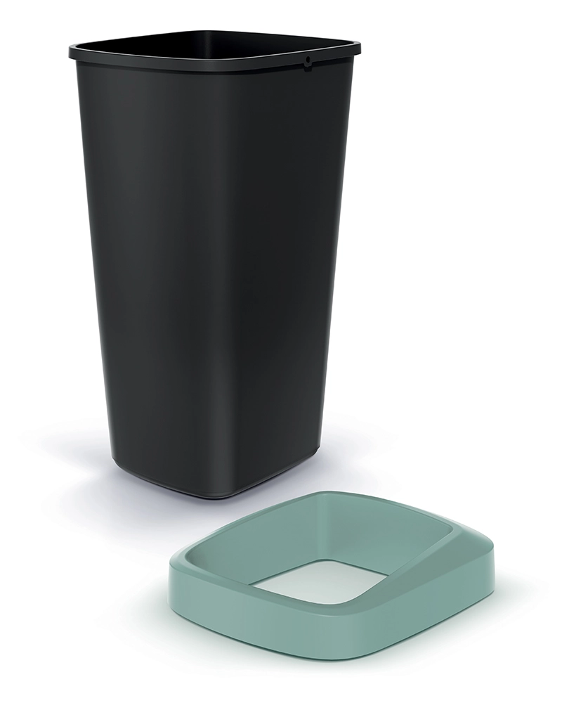 La cornice verde chiaro blocca in modo affidabile il bordo del sacco, mantiene pulita l’area intorno al cestino e nasconde con eleganza le eccedenze.