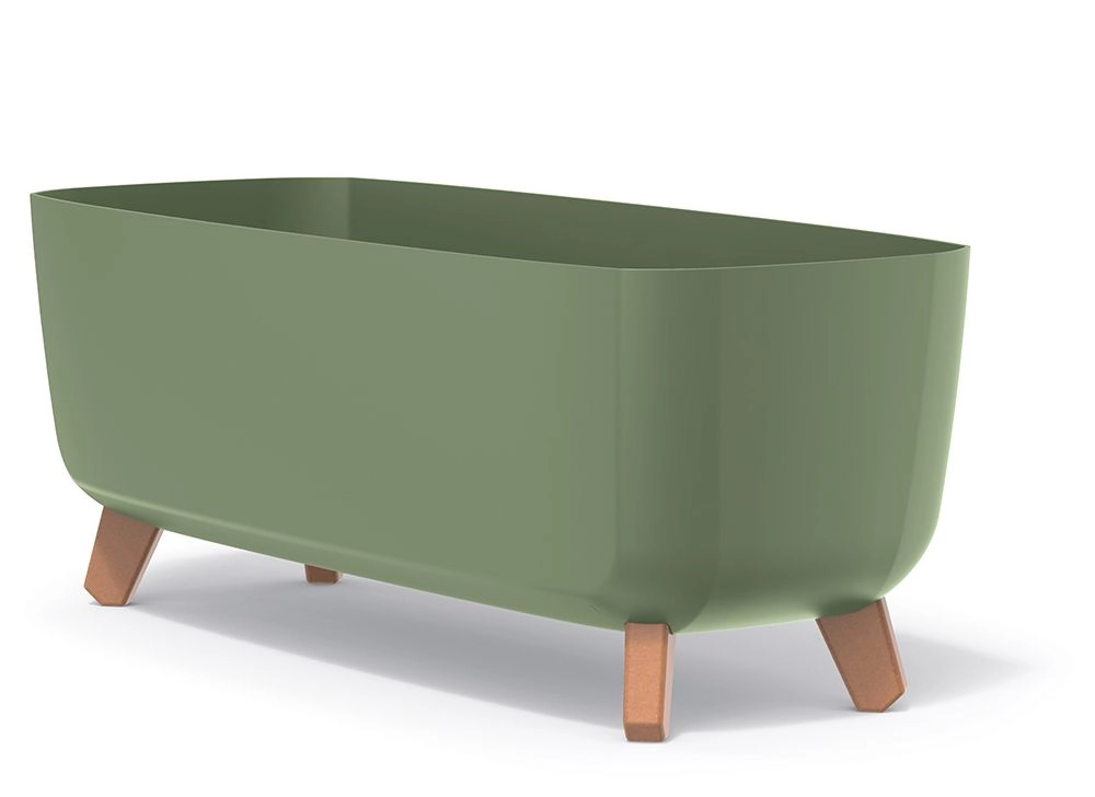 Linee pulite e il colore verde terroso si abbinano a interni moderni e terrazze. La superficie liscia è facile da mantenere e i piedini rialzati donano leggerezza e stabilità.