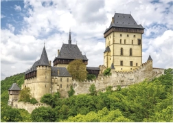 - Motivo realistico del castello di Karlštejn con dettagli marcati e colori vivaci.