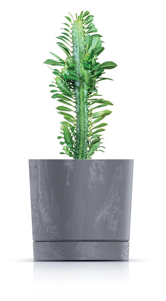 Il vaso Tubo P con diametro di 10,8 cm completa alla perfezione davanzali, mensole e tavolini. Unisce il raffinato aspetto del cemento alla praticità della plastica leggera, offrendo così una facile maneggevolezza e una lunga durata. Il neutro colore antracite si abbina ad arredi moderni, minimalisti e industriali.