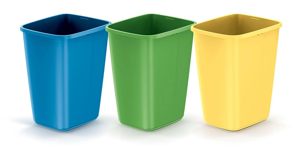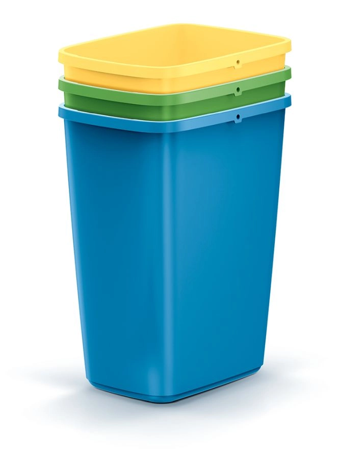 Tre colori vivaci – blu, verde e giallo – per separare intuitivamente i rifiuti, che si tratti di plastica, carta o vetro.