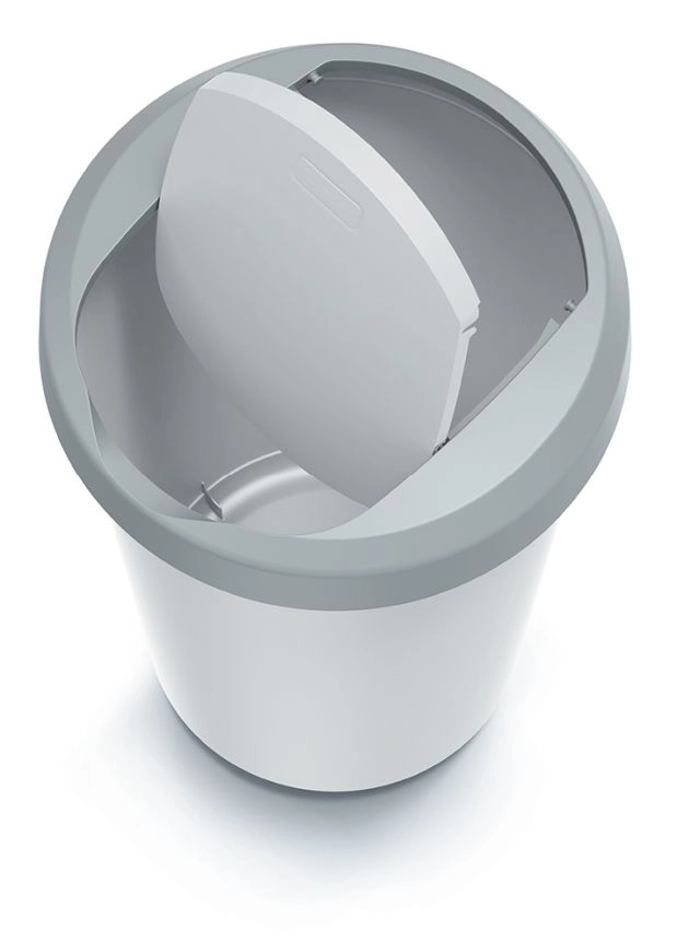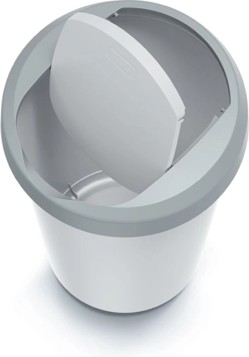 Il pratico coperchio a battente aiuta a trattenere i cattivi odori e a nascondere il contenuto. La base compatta fa risparmiare spazio offrendo al contempo capacità sufficiente per i rifiuti domestici di tutti i giorni.