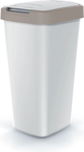 Elegante pattumiera da 25 l per casa e ufficio che unisce funzionalità pratiche e design senza tempo. La plastica resistente facilita la manutenzione, le due modalità di apertura del coperchio aumentano il comfort e il bordo colorato del coperchio contro lo scivolamento del sacco garantisce un utilizzo pulito e ordinato anche durante la raccolta differenziata. Grazie alle dimensioni compatte si adatta anche agli spazi più piccoli.