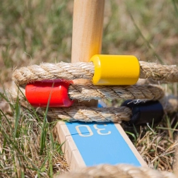 La struttura in legno e gli anelli in robusta corda resistono all’entusiasmo dei giocatori e all’uso in giardino. I materiali naturali sono piacevoli al tatto e rispettosi dell’ambiente.