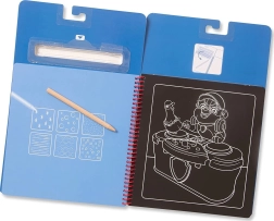 Basta prendere il bulino in legno incluso, grattare delicatamente lo strato nero e sotto appariranno immagini dai colori vivaci. Gli stencil e gli adesivi aiutano i bambini a creare i propri motivi, sviluppando motricità fine, creatività e pazienza.