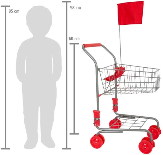 Il carrello della spesa per bambini SMALL FOOT in argento, dal design realistico, colpisce per la solida struttura in metallo, gli accenti rossi e la bandierina di sicurezza. Grazie alle ruote anteriori girevoli, il carrello è facile da manovrare anche negli spazi ridotti, così i bambini possono “fare la spesa” comodamente come i genitori.