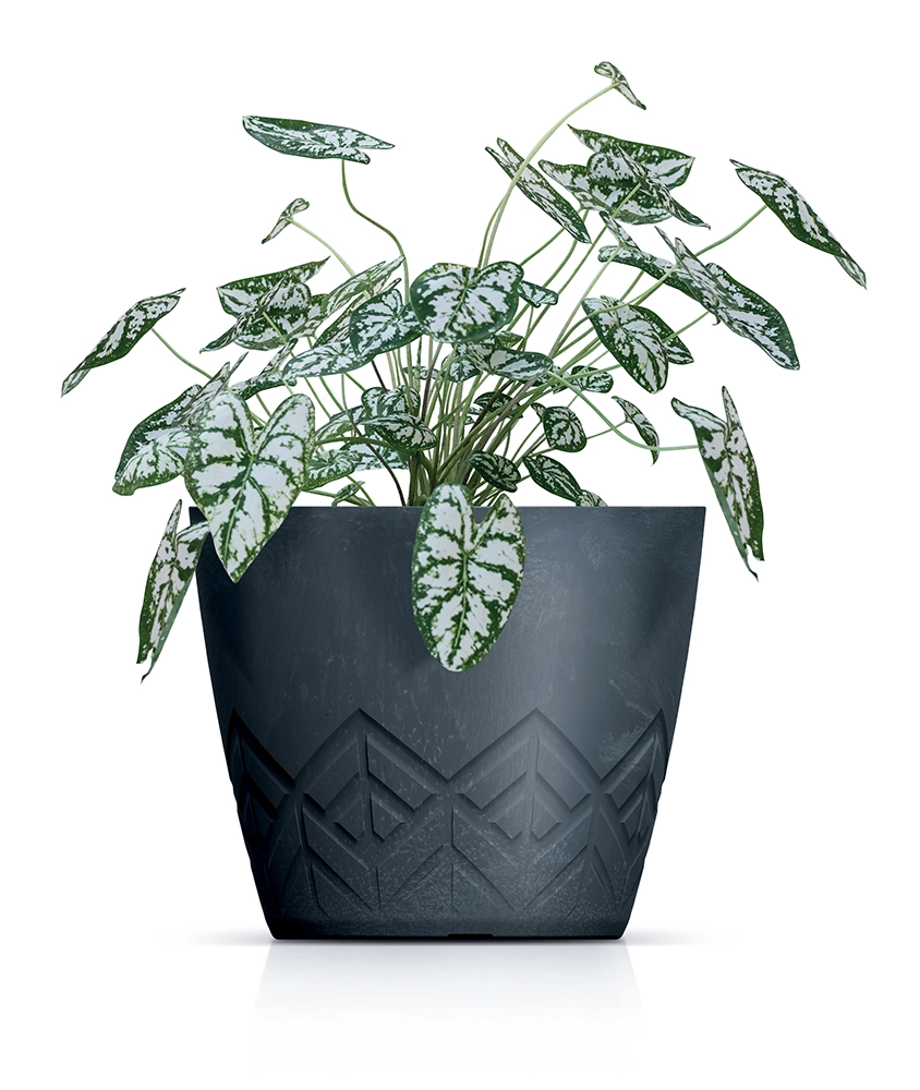 La finitura opaca con venature marmorizzate e il pronunciato motivo geometrico nella parte inferiore incorniciano con stile le piante e valorizzano ogni ambiente.
