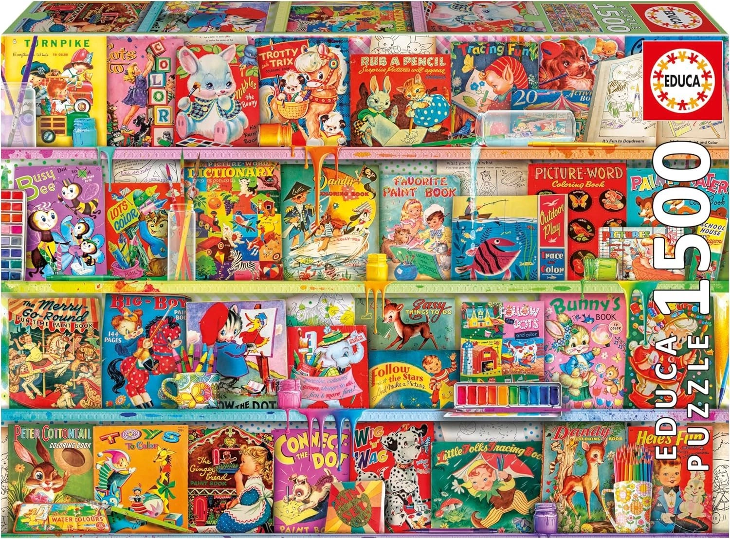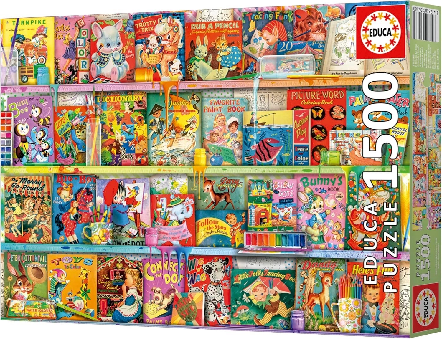 Scopri la gioia del puzzle con EDUCA da 1500 pezzi con il motivo di un angolo lettura kitsch e divertente. Nella confezione è incluso collante gratuito per fissare facilmente l’immagine finita dal formato ca 85 × 60 cm. Ideale per gli amanti dei libri che desiderano godersi una lavorazione di qualità e colori vivaci durante lunghi momenti di relax.