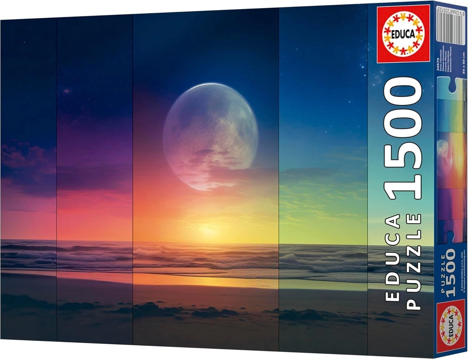 Immergiti nell’affascinante tema dei corpi celesti e delle loro fasi con il puzzle di alta qualità firmato Educa. Grazie al taglio preciso e ai pezzi robusti, l’assemblaggio è scorrevole e divertente; il risultato è un’immagine d’effetto che, con la colla inclusa, potrai fissare e mettere in mostra con facilità.