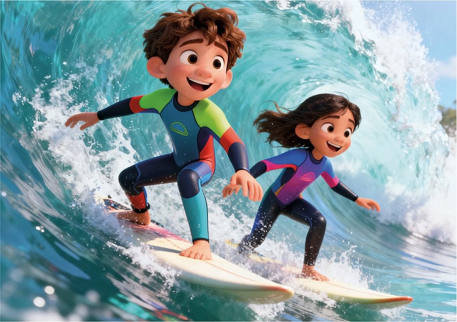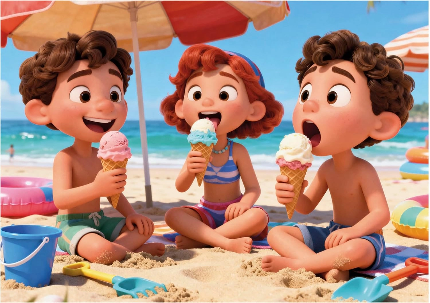 Scene colorate della spiaggia con bambini e atmosfera estiva incoraggiano la fantasia e rendono l’apprendimento divertente.