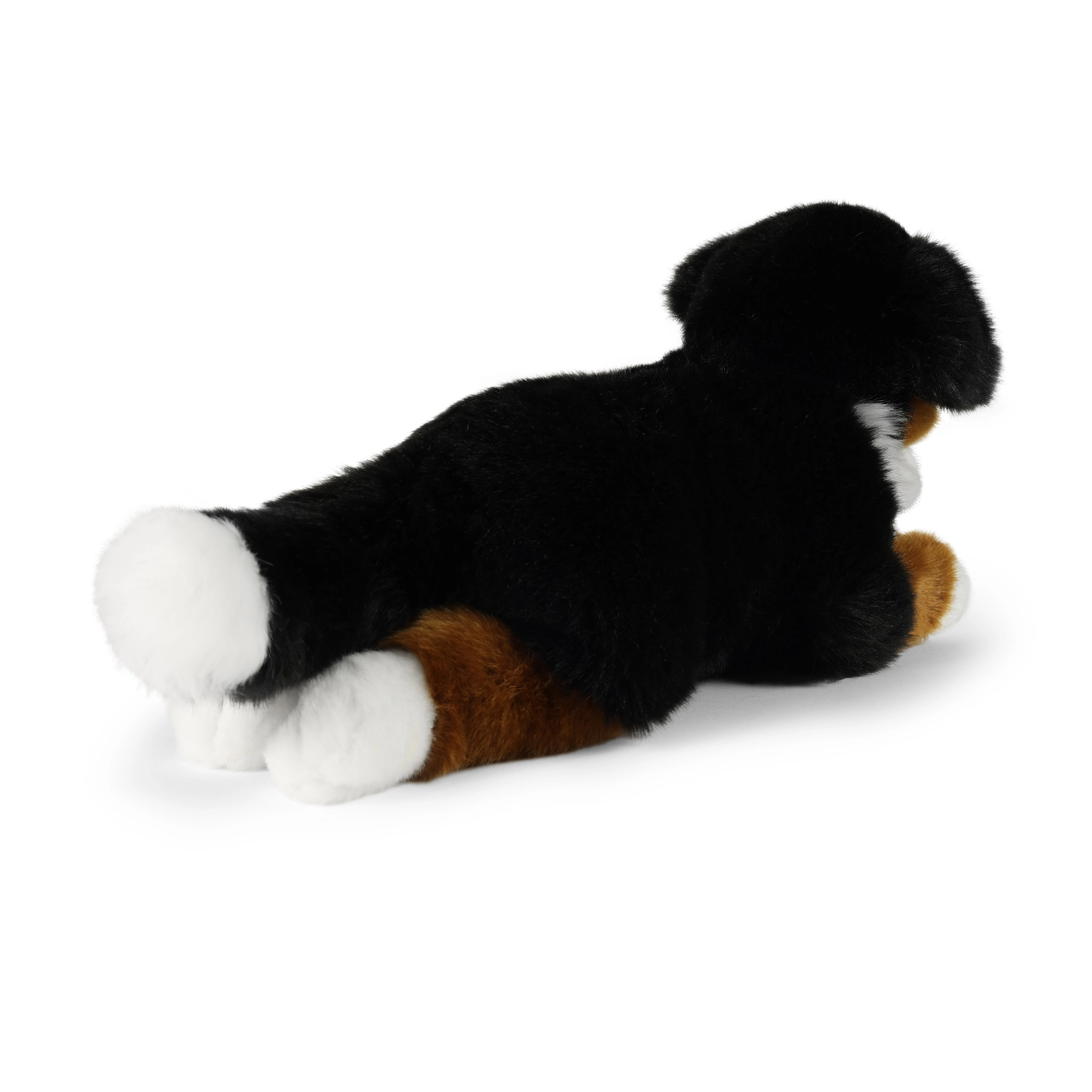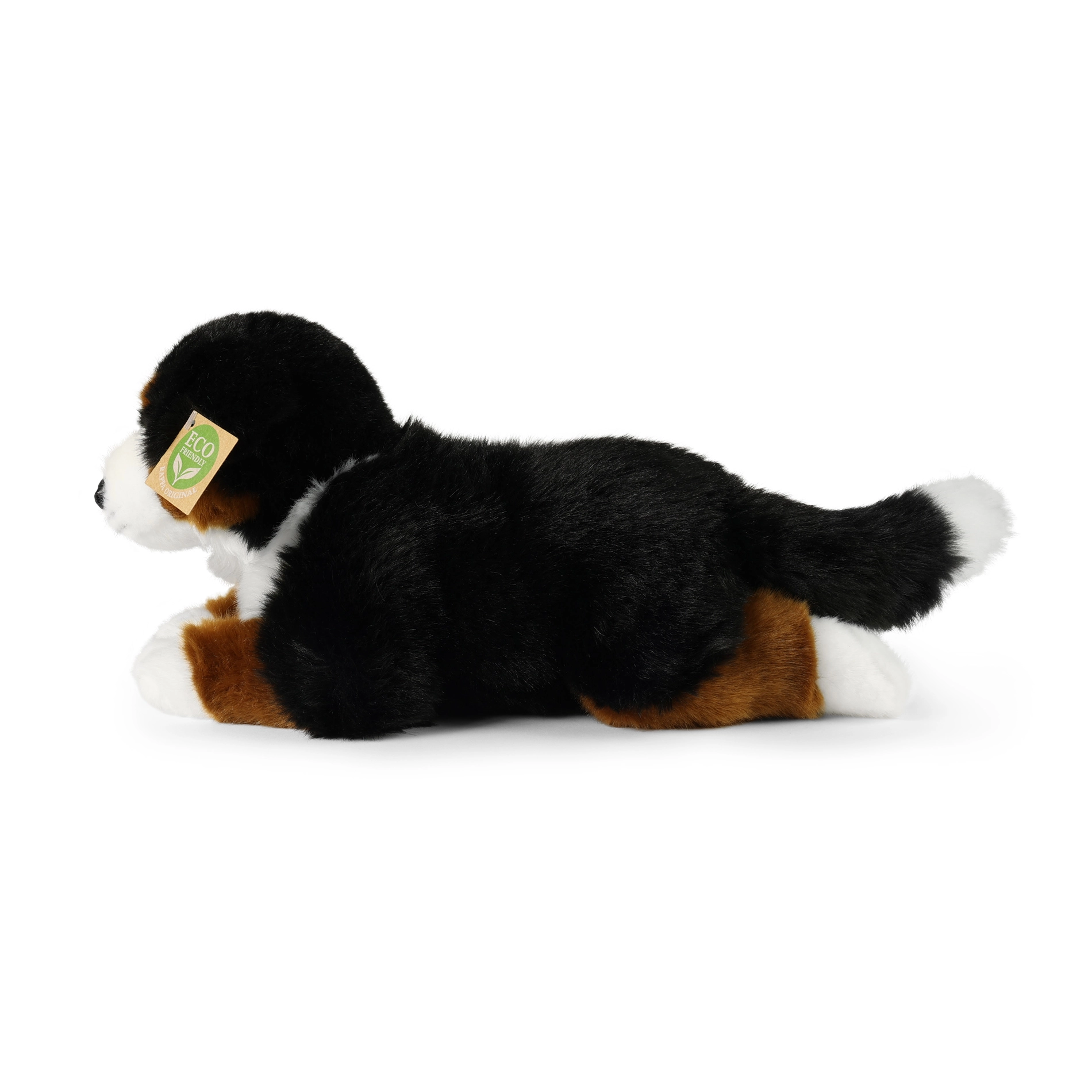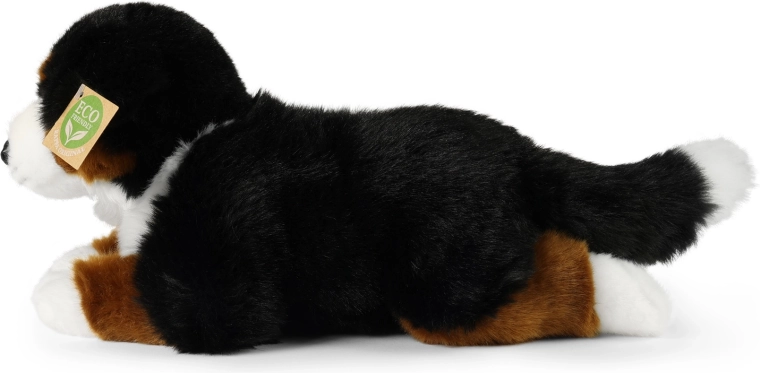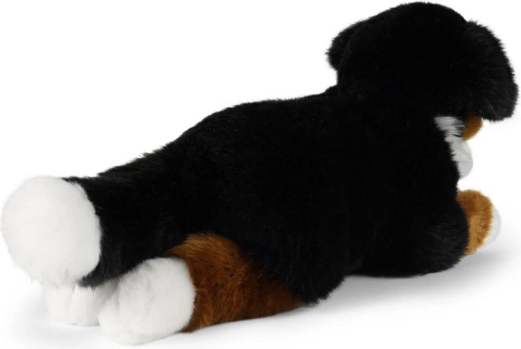 Adorabile cane da montagna bernese di peluche lungo 34 cm, realizzato in morbida pelliccia soffice e imbottito con materiali riciclati. Grazie alla lavorazione artigianale ha un aspetto realistico, è sicuro anche per i neonati e sarà perfetto come coccolone per la nanna o come elegante decorazione per la cameretta.