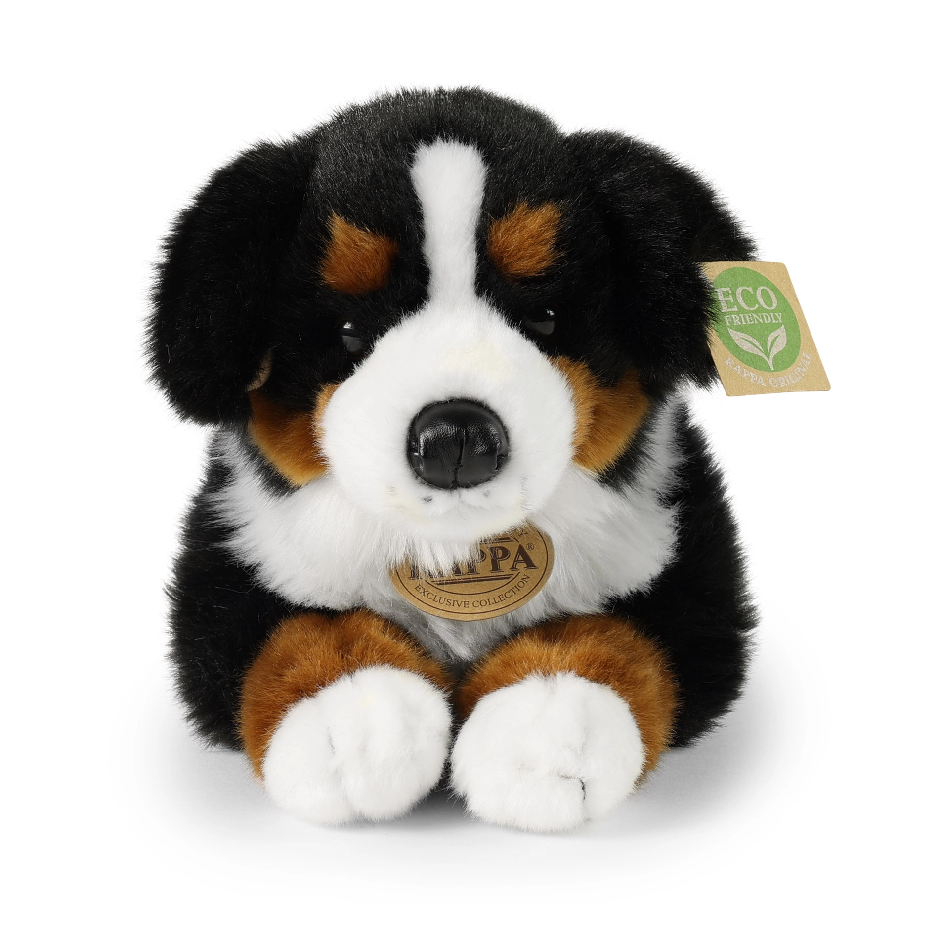 Questo peluche della collezione esclusiva RAPPA conquista per la qualità e i dettagli realistici del cane da montagna bernese. Il manto tri‑colore morbidissimo, i dettagli ricamati e l'imbottitura soffice rendono il cagnolino il partner ideale per coccole, gioco e nanna.