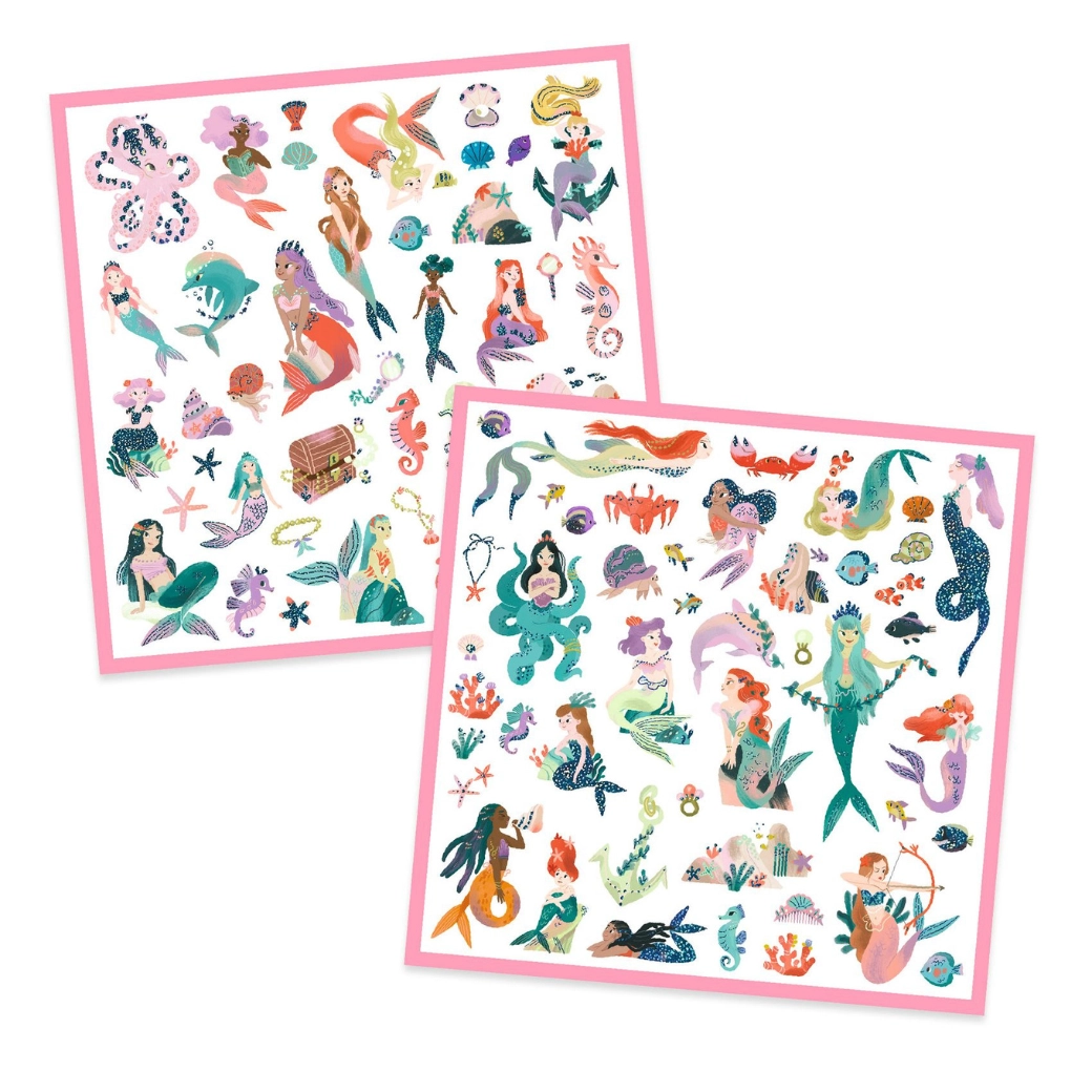 Scoprite un mondo di fantasia con gli eleganti adesivi DJECO con sirene, pesciolini e decorazioni sottomarine. Gli adesivi si staccano facilmente e aderiscono bene alla carta, perfetti per lavoretti in casa, scrapbooking e progetti scolastici.