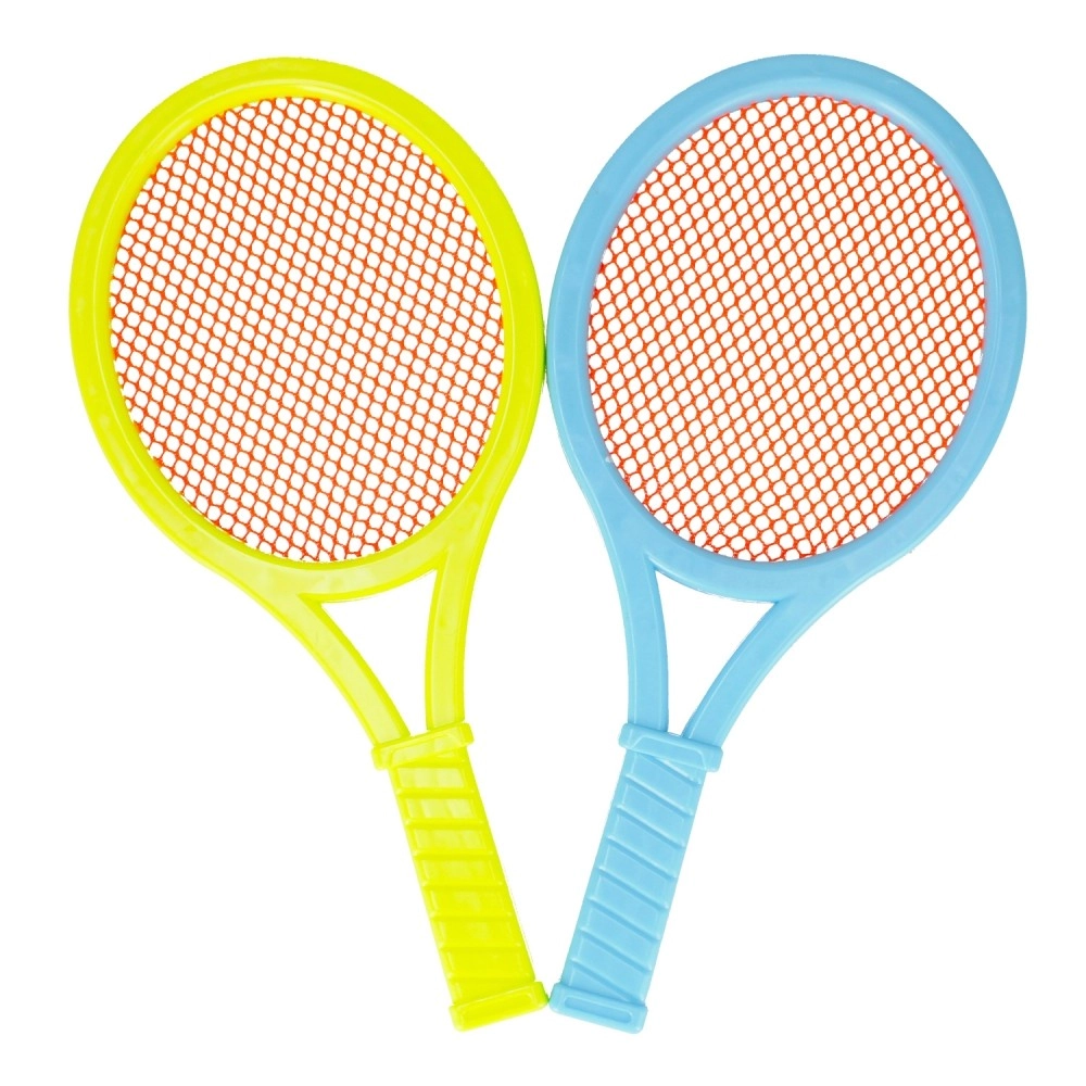 Questo set versatile è ideale per avvicinare i bambini allo sport. Grazie ai materiali leggeri in plastica, gommapiuma e tessuto, le racchette sono facili da maneggiare e i bambini imparano a giocare rapidamente. La struttura resistente con impugnature testurizzate garantisce presa sicura e comfort anche durante sessioni più lunghe.