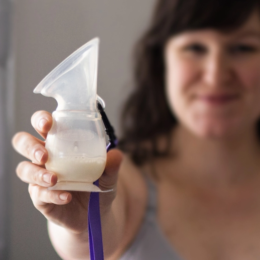 - Collettore in silicone per latte materno (manuale, hands‑free)