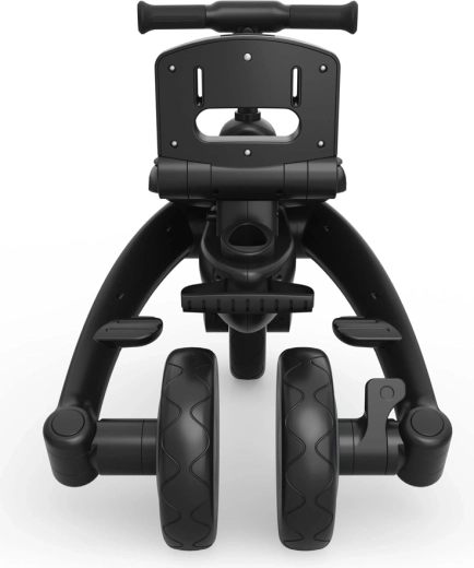 Si richiude in pochi secondi. La doppia sicura evita aperture involontarie e il triciclo chiuso può stare in piedi stabilmente sia in verticale sia in orizzontale: ideale per casa, ascensore e bagagliaio.