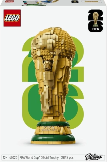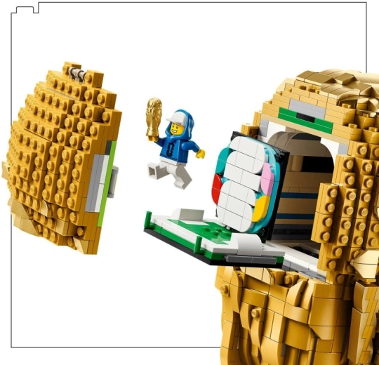 Questa replica dettagliata del leggendario trofeo porta a casa tua un pezzo di storia del calcio. Due figure stilizzate sollevano il globo su una solida base con targhetta dei vincitori, mentre la parte superiore apribile rivela una minifigure con il logo della Coppa del Mondo FIFA 2026 e una scena colorata dello stadio. Il modello è pensato come decorazione d’effetto e impressionante pezzo da esposizione per ogni appassionato.