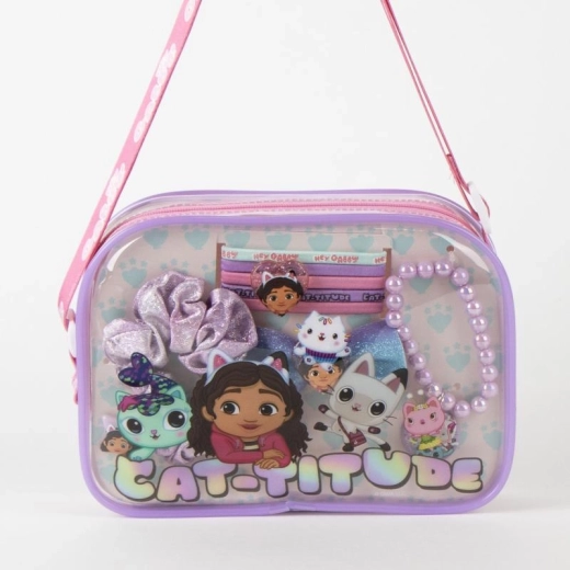 Crea facilmente bellissime acconciature con il set coordinato ispirato al mondo amato di GABBY DOLL'S HOUSE. Grazie alla pochette compatta avrai tutti gli accessori ben organizzati in un unico posto – ideale a casa e in viaggio.