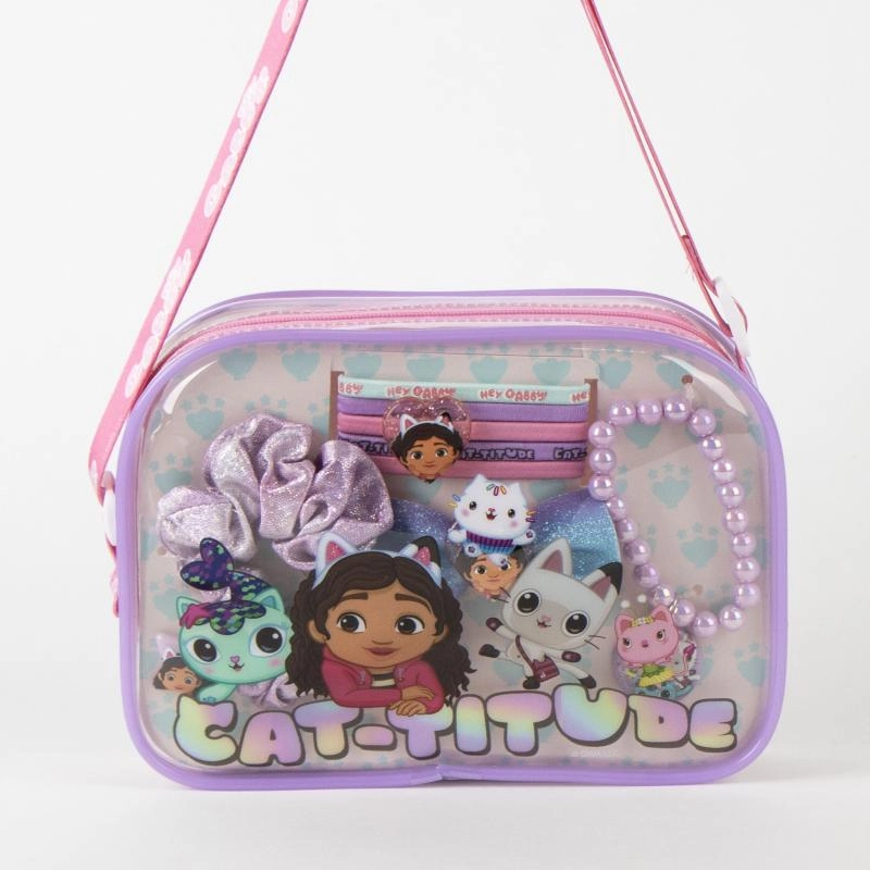 Un adorabile set di accessori per capelli in una pratica pochette che farà felici tutte le piccole fan di GABBY DOLL'S HOUSE. All'interno troverai mollette per capelli, elastici, una stilosa scrunchie e un braccialetto coordinato – tutto per acconciature quotidiane e combinazioni giocose.
