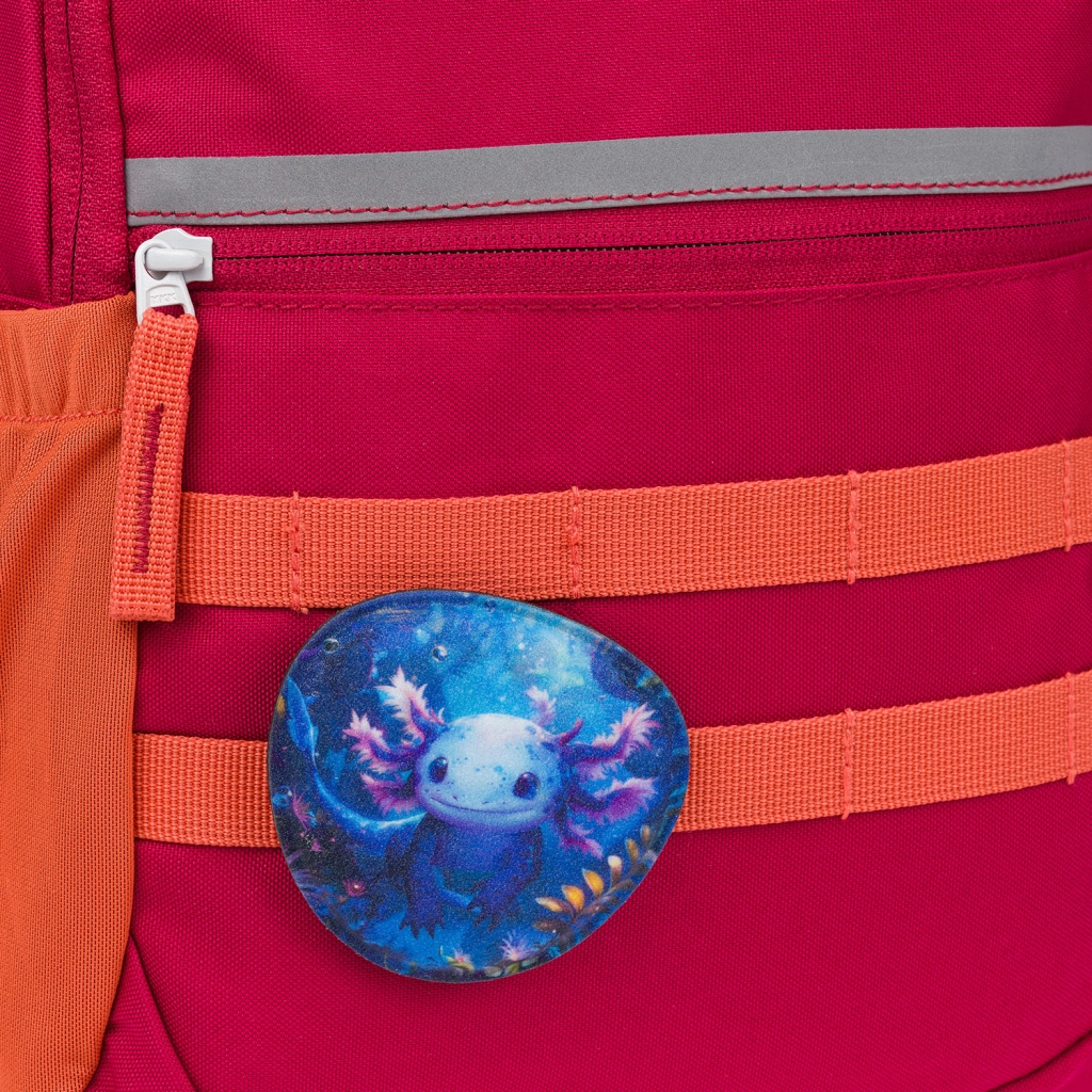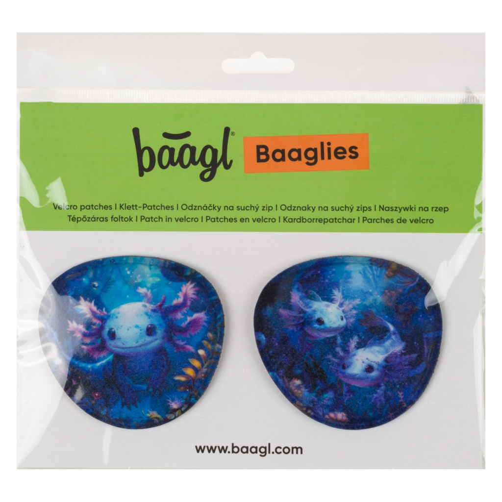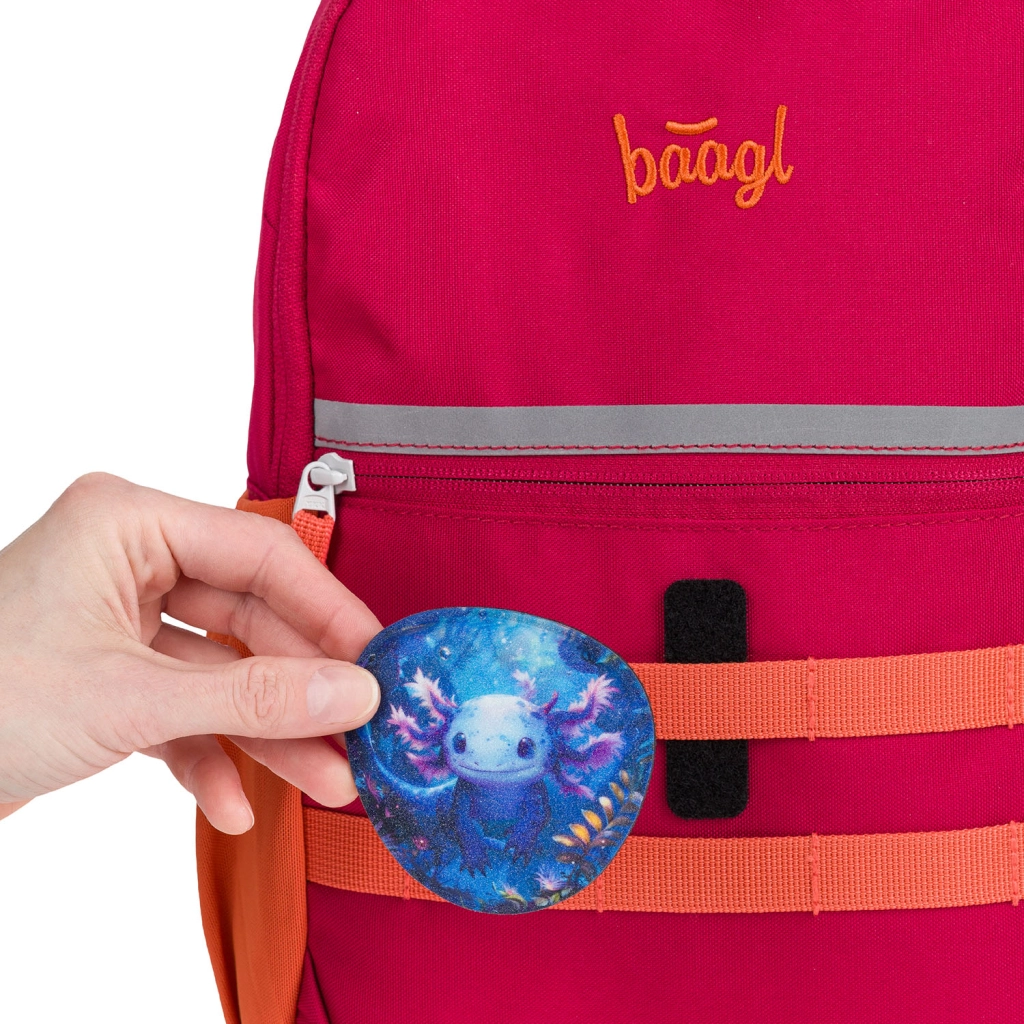I badge BAAGLIES sono un accessorio intelligente per cartelle e zaini BAAGL. Il motivo Axolotl farà felici gli amanti degli animaletti carini e consente una rapida personalizzazione del corredo scolastico. L’installazione semplice tramite velcro garantisce un fissaggio sicuro e una sostituzione facile in pochi secondi.
