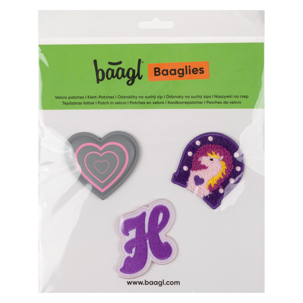 Il set di tre divertenti patch/spillette BAAGL Baaglies con motivi di cavalli e cuore trasforma ogni zaino in un pezzo unico. Basta fissarle alle cinghie o al pannello con velcro predisposto per cambiare stile in un attimo. Perfette per i bambini che amano esprimere la propria personalità.