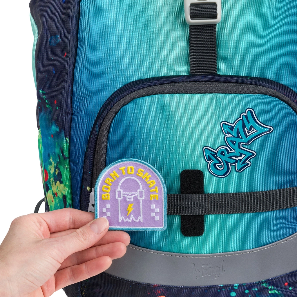 Dai nuova vita alla cartella o allo zaino scolastico con il set di badge intercambiabili BAAGL Baaglies con motivo Skate Park Wall. Il pratico fissaggio a strappo consente un cambio rapido in base all’umore e agli interessi del bambino. Il design giocoso stimola la creatività, permette una facile personalizzazione e garantisce che lo zaino non stanchi mai.