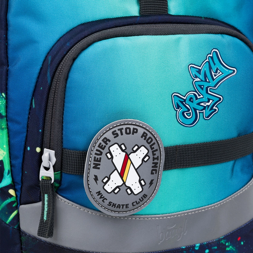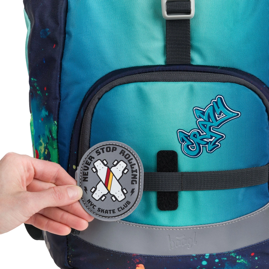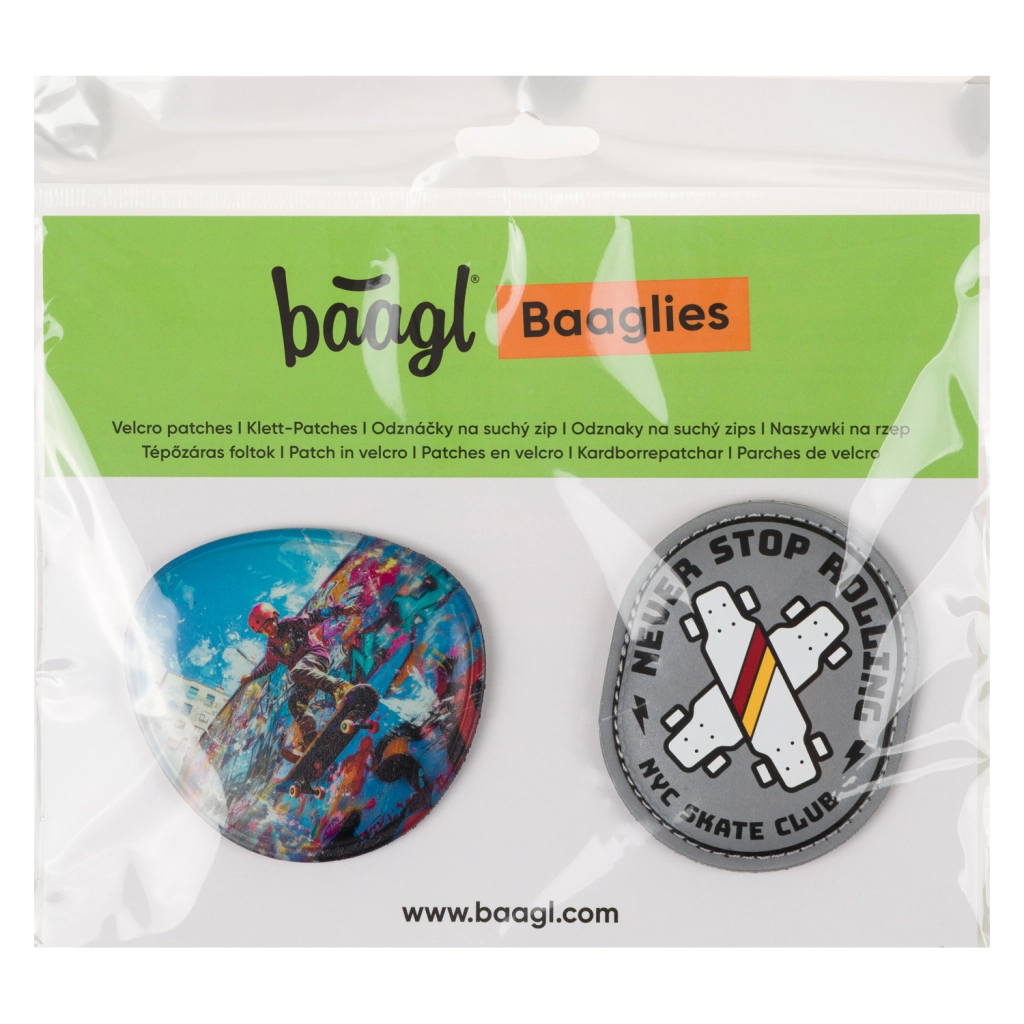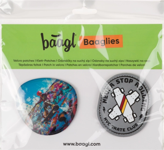 Dai nuova vita alla cartella o allo zaino scolastico con le stilose BAAGLIES a tema Skate Park. Grazie al semplice fissaggio con velcro puoi cambiarle in qualsiasi momento in base all’umore. Design giocoso, facile personalizzazione e oltre 70 motivi accattivanti faranno sì che lo zaino non annoi mai i bambini.