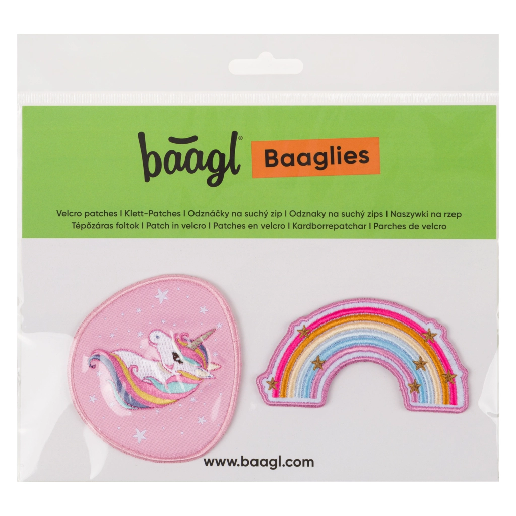 I distintivi BAAGLIES sono un modo giocoso per cambiare rapidamente il design di cartelle e zaini BAAGL. L’installazione, grazie al velcro, richiede solo un attimo: basta applicarli ed è fatta. Il motivo Rainbow Unicorn conquisterà tutti gli amanti dei colori e del magico mondo degli unicorni.