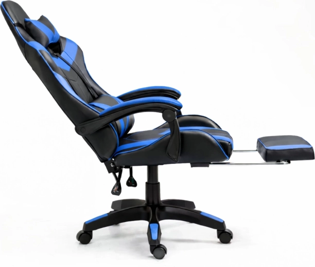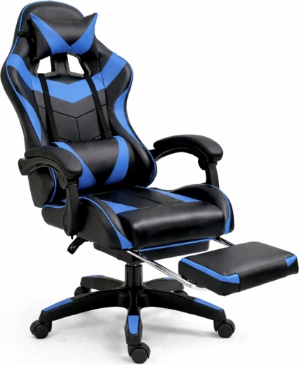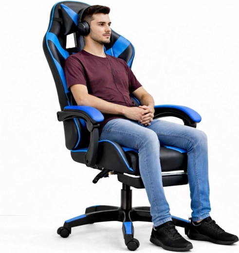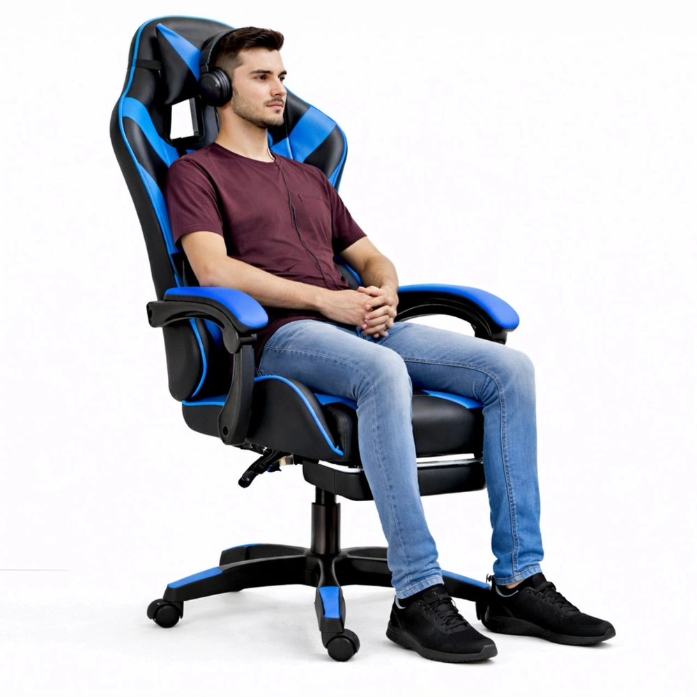 Il pratico poggiapiedi estraibile rilassa le gambe, mentre la rotazione a 360° e la base a cinque ruote facilitano gli spostamenti nella stanza. Il rivestimento in ecopelle resistente e di facile pulizia offre lunga durata e si integra perfettamente sia nell’angolo gaming che in ufficio.