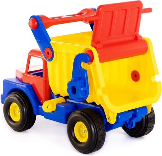 Giocare con il camion favorisce la motricità fine e grossa, migliora la coordinazione occhio–mano e sostiene il gioco creativo. Il ribaltabile è sicuro, colorato e, grazie alle grandi ruote, affronta anche superfici irregolari.