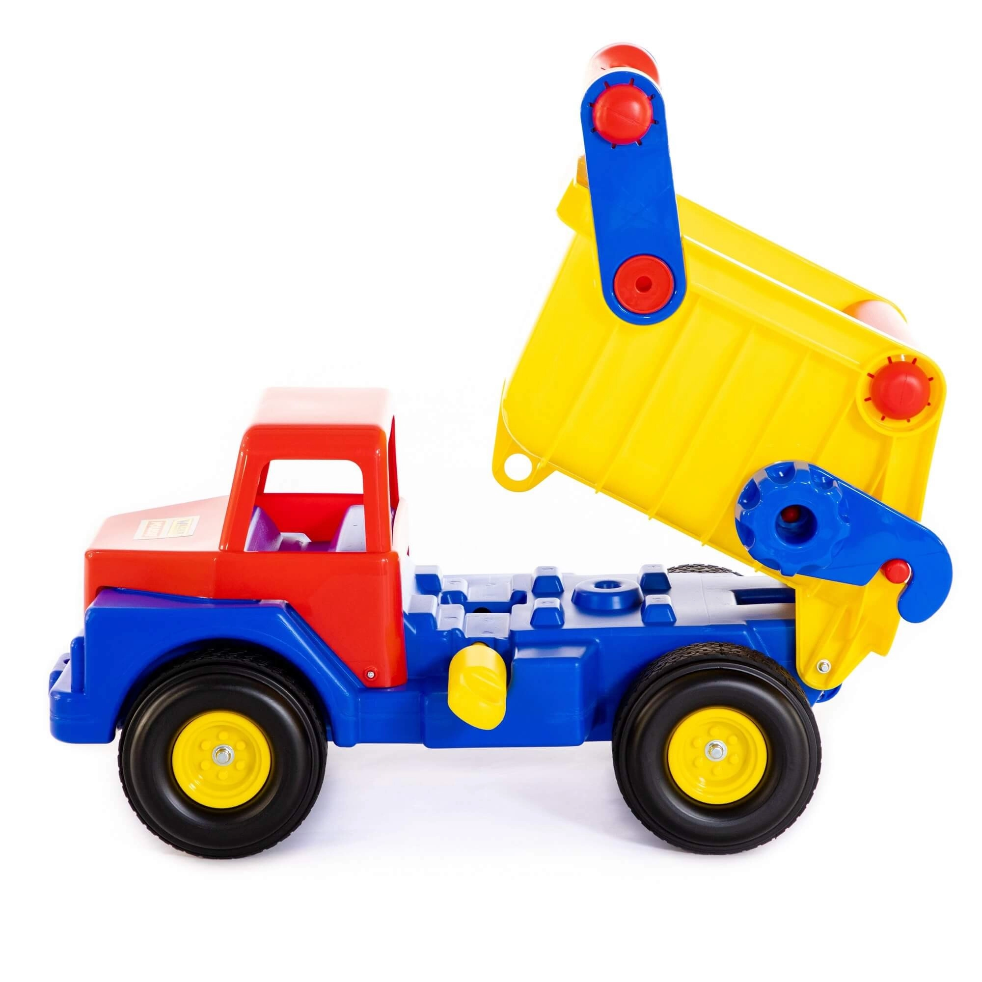 Questo colorato camion ribaltabile in plastica è ideale per i piccoli costruttori. Grazie alla struttura resistente e alle morbide ruote in gomma, la marcia è silenziosa e fluida sia in casa che all’aperto. I bambini possono sollevare facilmente il cassone ribaltabile e trasportare sabbia, sassolini o mattoncini.