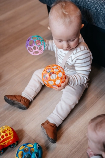 OBALL CLASSIC 10 cm è un giocattolo iconico con struttura a griglia aperta in plastica super morbida, flessibile e praticamente indistruttibile. Grazie alle 32 aperture, i bebè imparano facilmente ad afferrare, scuotere, far rotolare e passare la pallina da una mano all’altra – rafforzando dita, palmi e la coordinazione occhio‑mano. Il peso ridotto e la texture piacevole invitano al gioco in casa, durante il tummy time e in viaggio nel passeggino.