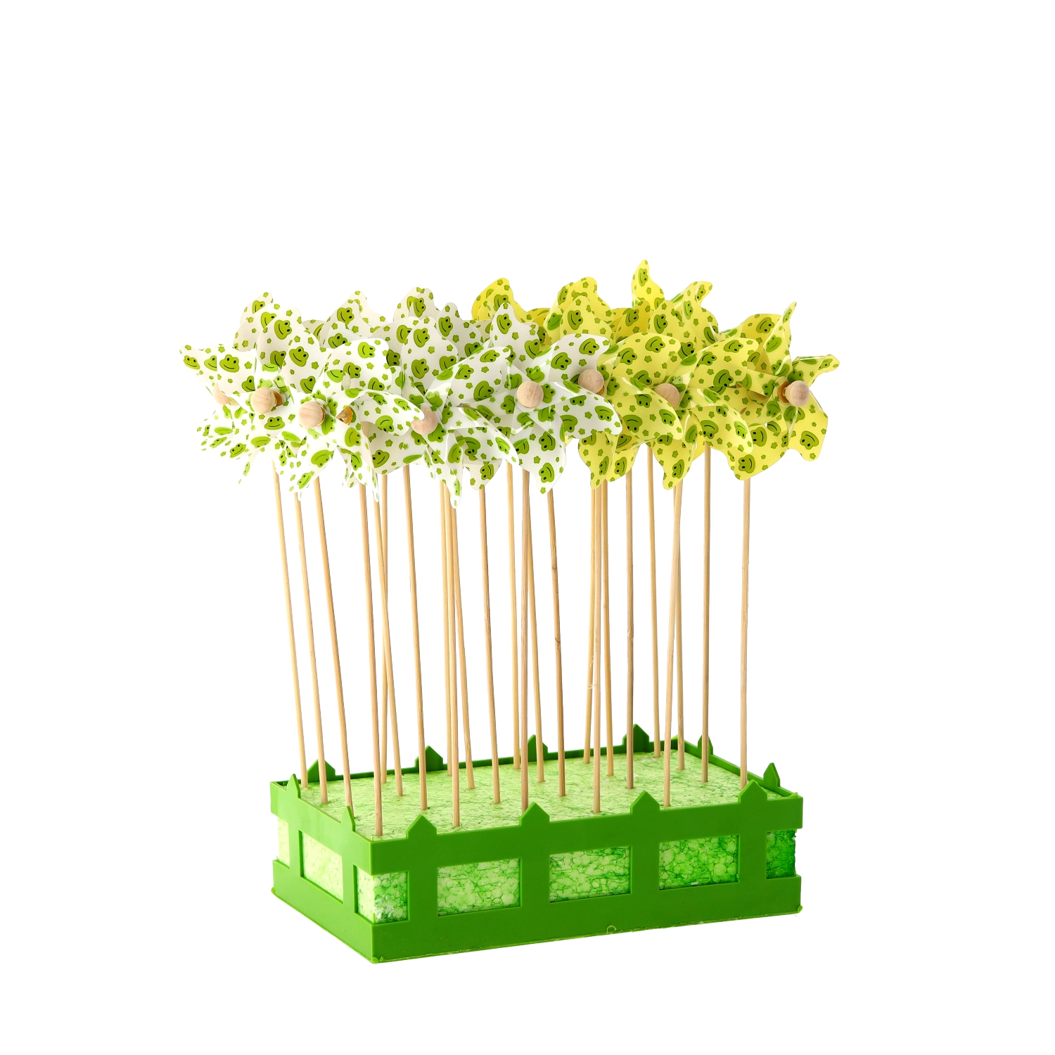 La girandola con ranocchiette è una decorazione adorabile per bambini e adulti. Grazie alle leggere palette in PVC gira facilmente anche con una brezza leggera e dona allo spazio movimento, colore e allegria. Il bastoncino in bambù naturale garantisce stabilità e un aspetto gradevole.