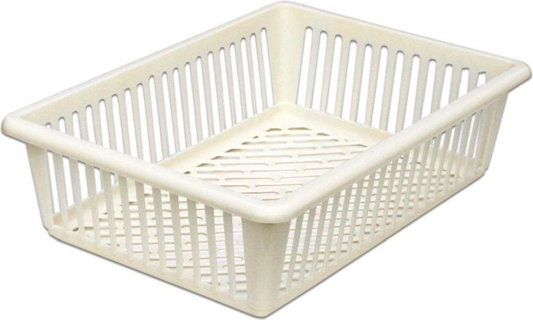 Grazie alla plastica resistente il cestino è facile da mantenere, leggero e adatto a un uso quotidiano. La forma con leggere pareti inclinate permette un pratico impilaggio e un uso efficiente dello spazio in scaffali, armadietti e cassetti.