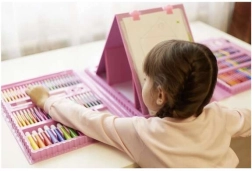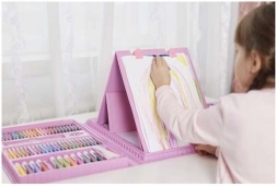 Questo ampio set da disegno offre 208 pezzi di strumenti in una pratica valigetta rosa, ideale per bambini creativi che vogliono avere sempre a portata di mano i loro accessori artistici. Include vari tipi di matite colorate, pennarelli e colori per una creatività illimitata.