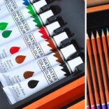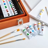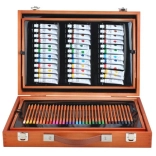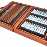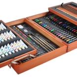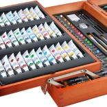 Grande set da pittura con 177 pezzi, ideale per artisti piccoli e grandi. Grazie al cofanetto in legno solido con chiusure, tutto rimane al suo posto, garantendo un trasporto sicuro.