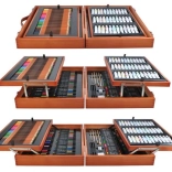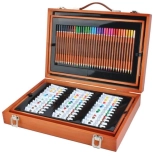 Arricchisci le tue attrezzature artistiche con questo fantastico set da pittura che include pastelli, pennarelli, acquerelli e colori a olio. Ottieni qualità e durata che offre il cofanetto in legno solido con impugnatura pratica e chiusure per un facile trasporto e spostamento sicuro. Ogni elemento ha il suo posto, assicurando che tutto rimanga organizzato e pronto all'uso.
