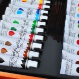 Ogni strumento artistico ha il suo posto nel cofanetto solido con chiusure che assicurano stabilità.