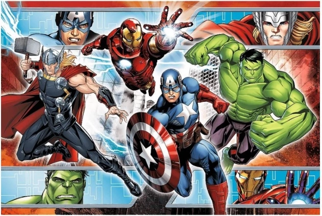 Il puzzle raffigura amate figure degli Avengers come Thor, Iron Man, Capitan America e Hulk.