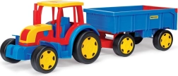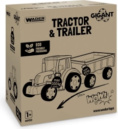Il nostro grande trattore della linea Gigant è dotato di un rimorchio con sportello posteriore apribile. Questi veicoli sono un giocattolo ideale per i bambini, sia per costruire, caricare che spostare materiali. La benna mobile del trattore funziona come bulldozer o caricatore, aggiungendo ancora più divertimento al gioco. I punti di forza di questo trattore sono l’alta qualità costruttiva, la resistenza e la capacità di carico - il trattore sopporta fino a 100 kg e il rimorchio fino a 60 kg.