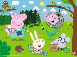 I puzzle Avventura nel Bosco Peppa Pig sono ispirati alla famosa serie animata per bambini Peppa Pig. Questo grande puzzle di cartone robusto è creato appositamente per i bambini piccoli. I colori vividi e i bellissimi schemi degli animali incoraggiano il gioco dei bambini.