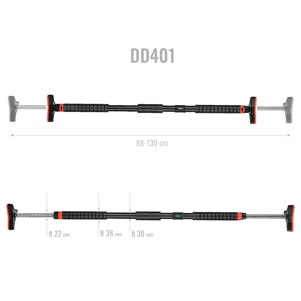 Grazie alla lunghezza regolabile di 98–130 cm, la sbarra si adatta facilmente alla maggior parte degli stipiti standard. La livella inclusa consente un allineamento preciso, rendendo l’installazione rapida e sicura. La sbarra è ideale per trazioni, pull-up, push-up, dip e varianti di press – supporta lo sviluppo di forza, resistenza e forma fisica generale.