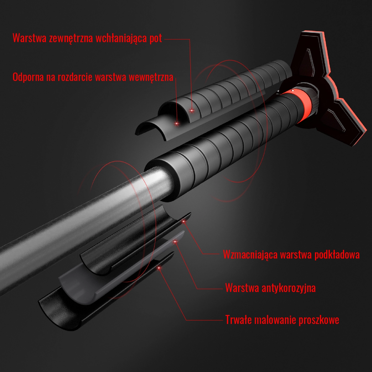 HMS DD401 è una sbarra per porta affidabile in acciaio inox con rivestimento anticorrosione e verniciatura a polvere, progettata per stabilità e sicurezza. Le impugnature ergonomiche in schiuma EVA assorbono il sudore e garantiscono una presa salda e confortevole anche durante allenamenti intensi. Le estremità triangolari con NBR distribuiscono la pressione in larghezza, proteggono lo stipite e aumentano la sicurezza durante l’esercizio.