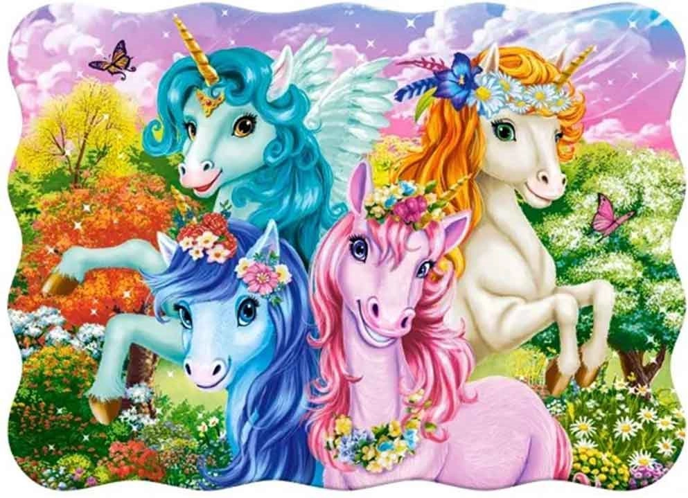 Scopri un mondo di fantasia con il puzzle Castorland Unicorni. I pezzi grandi di circa 5 cm rendono più facile afferrare e comporre anche con le manine dei bambini e il bordo sagomato aiuta a orientarsi nell’immagine. Il puzzle completato misura circa 32 × 23 cm: dimensione ideale per i primi puzzle.