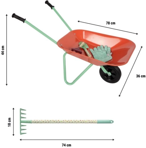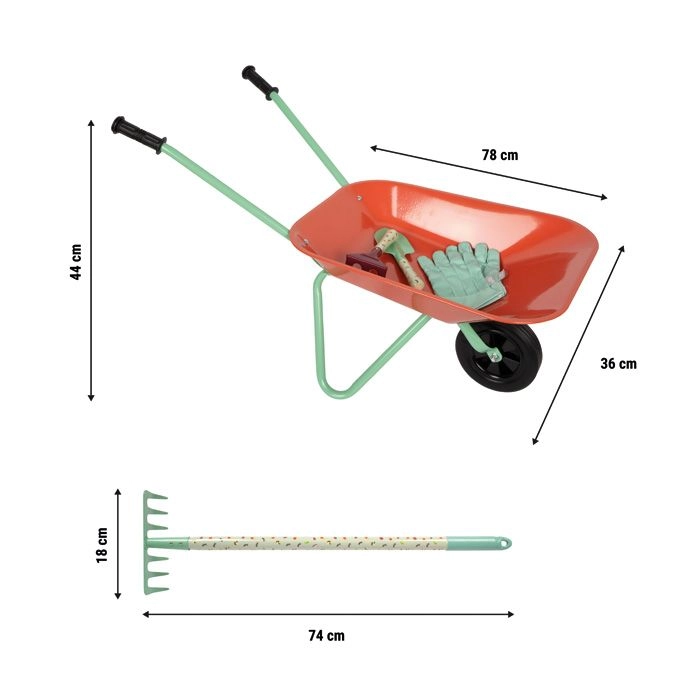 Questo set da giardinaggio completo per bambini incentiva movimento e creatività nei piccoli giardinieri. Include una pratica carriola per trasportare terra o foglie e attrezzi di base per rastrellare e spostare materiali. Grazie alla struttura robusta e alle dimensioni adatte, i bambini acquisiscono abitudini di lavoro in modo sicuro e divertente.