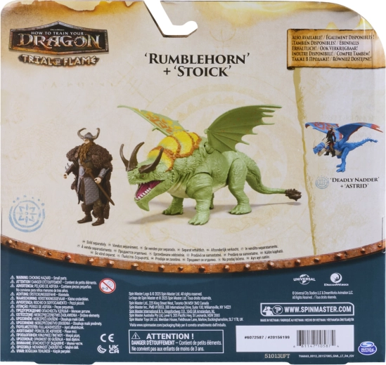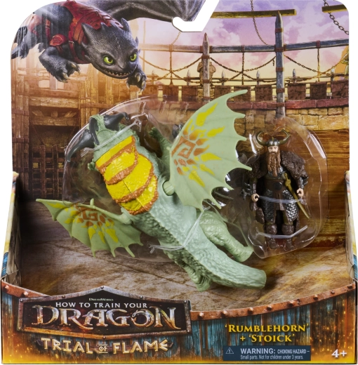 Entra nel mondo dei vichinghi e dei draghi. Il drago Rumblehorn verde–turchese con ali membranose decorate e corna pronunciate conquista per la sua realizzazione, mentre Stoick con l’iconica armatura è pronto all’azione. Le figure entusiasmeranno sia i collezionisti sia i bambini che amano le storie d’azione e rivivere le scene del film How to Train Your Dragon.