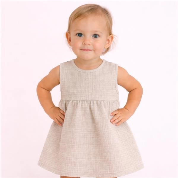Il leggerissimo vestitino in mussola per bambini New Baby Ella farà felice ogni piccola principessa. Senza maniche, con taglio ad A, gonna arricciata e comoda chiusura a pressione sulla schiena. Realizzato in mussola di cotone 100% con certificazione OEKO-TEX STANDARD 100 per la delicatezza, traspirabilità e sicurezza della pelle dei bambini.
