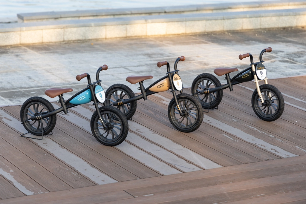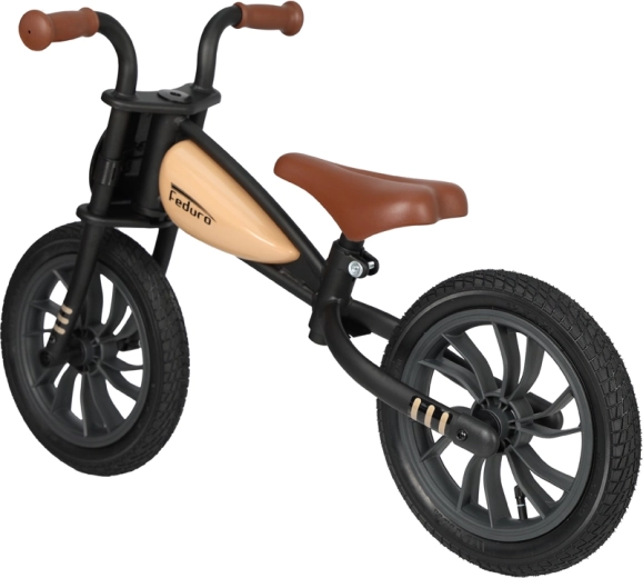 La stilosa bicicletta senza pedali Qplay Feduro con telaio in metallo ispirato alle motociclette aiuta i bambini a sviluppare equilibrio, coordinazione e autostima. Dispone di ruote gonfiabili da 12" per una guida stabile, sella morbida regolabile e manopole ergonomiche antiscivolo. Adatta a bambini 3–6 anni fino a 30 kg.